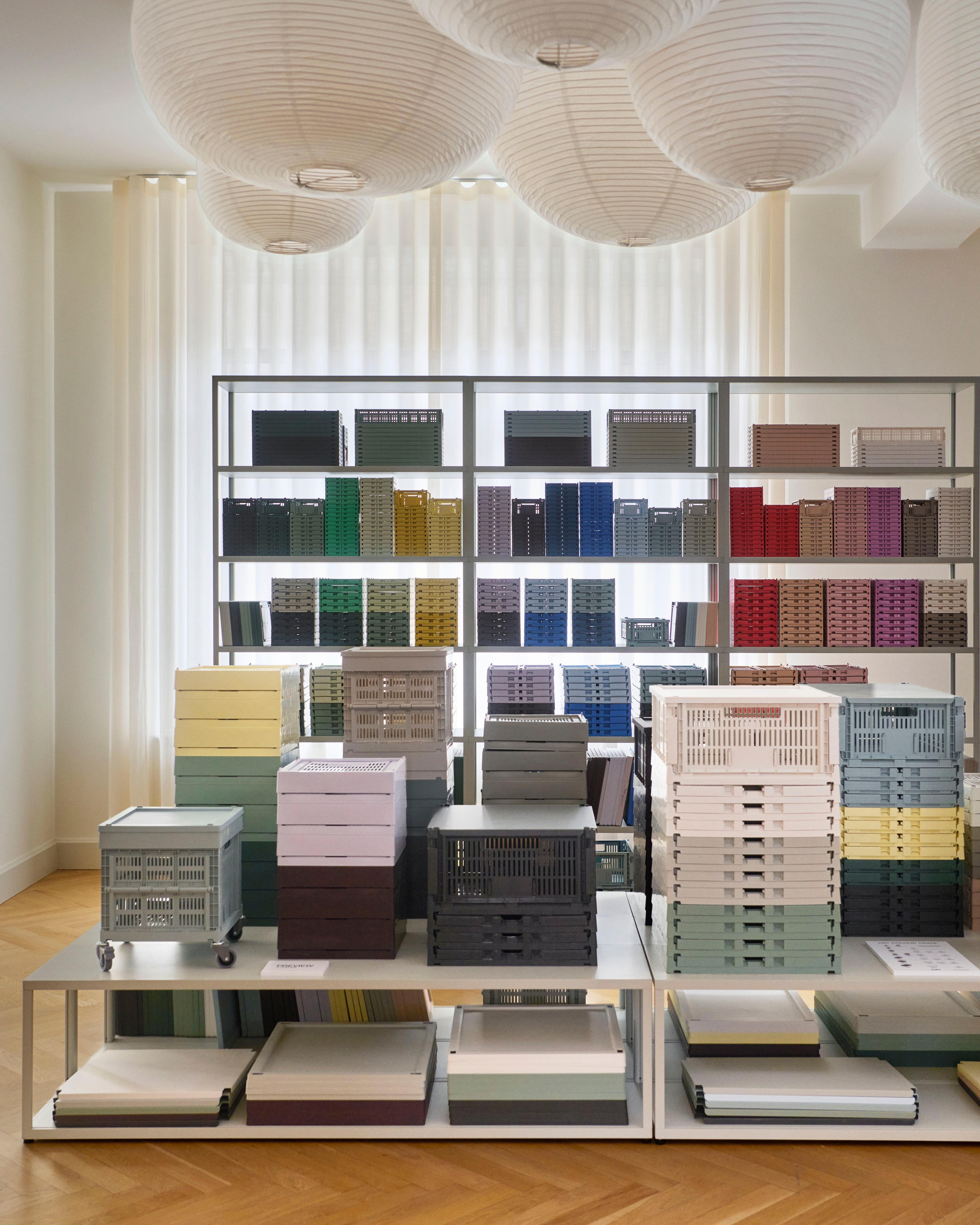 Each floor presents a mix of furniture, lighting, accessories, and everyday objects, all reflecting HAY’s signature style
